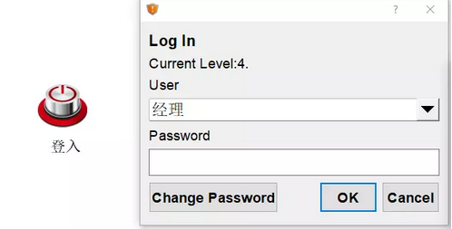 (3)完善其他程序內(nèi)容,然后下載到HMI、運(yùn)行人機(jī)界面,點(diǎn)擊登陸按鈕,登入高級別的賬戶,如下圖: