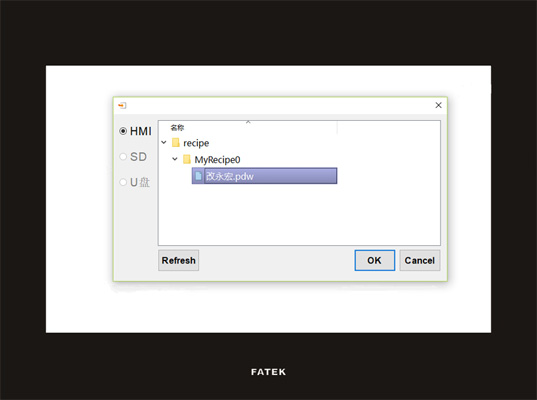 4.U盤下載PLC程序。如果使用C3/P5系列觸摸屏和永宏PLC通訊,那么您可以直接將PLC程序拷貝到U盤,然后將U盤插在觸摸屏上,可以將PLC程序直接下載到PLC并讓程序執行起來。