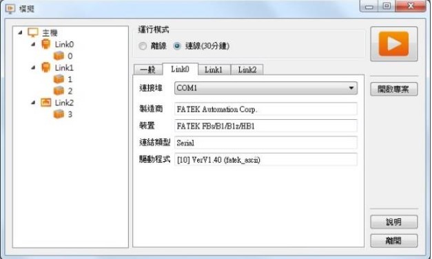 而模擬分為離線模擬與連線模擬,說明如下: