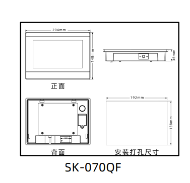 SK-070QF 顯控觸摸屏 產(chǎn)品尺寸圖